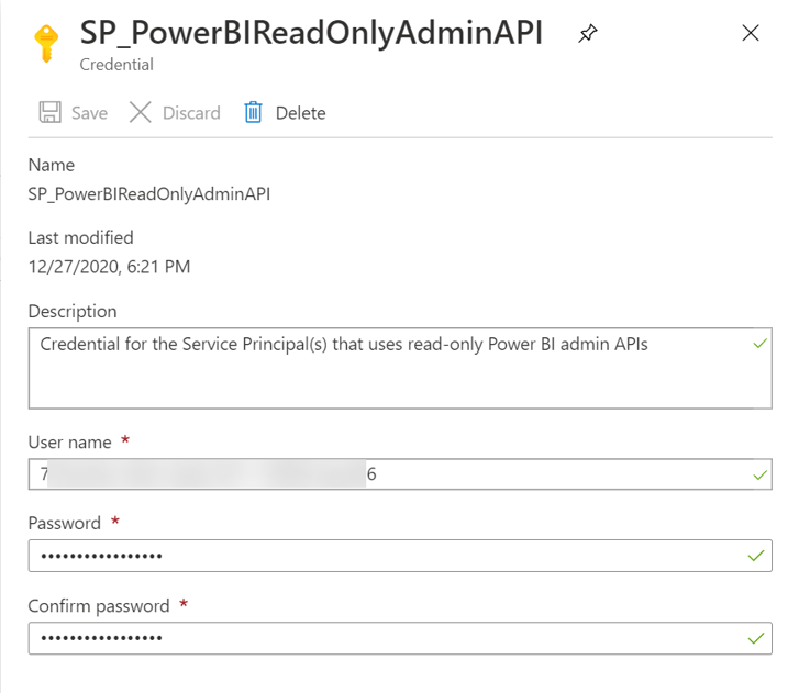 I created a credential named SP_PowerBIReadOnlyAdminAPI.