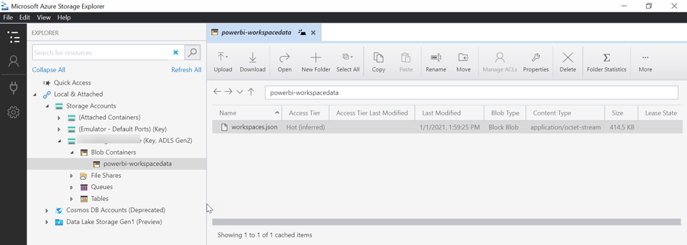 The Azure Blob store is one of the fundamental storage types in Azure. This article assumes that you can use an already existing storage account (Storage account overview - Azure Storage | Microsoft Docs) and a blob container called powerbi-workspacedata.