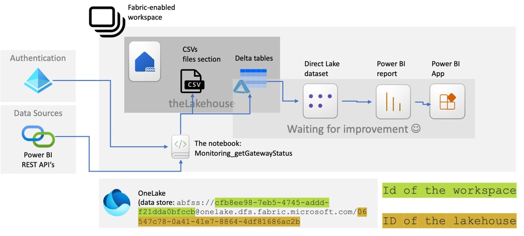 No matter what, when the on-premises gateways are not working as expected, data will not refresh, and direct query queries will not succeed. For this reason, I consider it a good idea to track the well-being of these valuable resources. This article describes a solution built with Microsoft Fabric. It’s not necessary to use Fabric, and it’s also not necessary to build a solution on your own. If you want to track the well-being of your on-premises data gateways but do not want to build something, I recommend using the solution by Rui Romano you can find here: https://github.com/RuiRomano/pbigtwmonitor