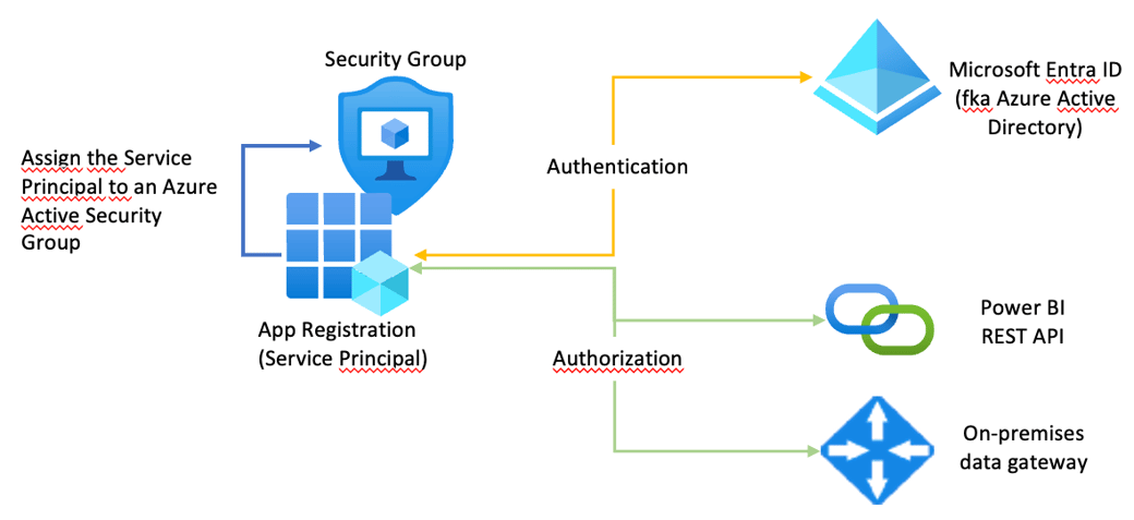 You can read about the creation of a Service Principal in this article: https://learn.microsoft.com/en-us/power-bi/developer/embedded/embed-service-principal?WT.mc_id=DP-MVP-5003068. From my experience, it’s always a good idea to add the Service Principal to an Azure Active Directory (Azure Entra ID) security group, the reason for this is simple, sometimes (maybe most of the time) it’s not possible to provide permissions to the Service Principal directly inside Power BI. Instead, permissions can only be granted via an Azure Entra ID security group.